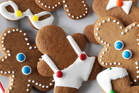 - Masa: Bate la harina para todo uso, la harina de trigo integral, la canela, jengibre, polvo de hornear, clavo y la sal en un tazón mediano. Bate el aceite, mantequilla, azúcar moreno, melaza, huevo y la ralladura de naranja en un tazón con una batidora eléctrica a baja velocidad hasta que estén bien mezclados.- Inicie con la batidora a baja velocidad, luego a velocidad media, bata aproximadamente la mitad de la mezcla de harina en los ingredientes húmedos hasta que se incorpore. Batir la mezcla de harina restante hasta que se haya incorporado. Deja reposar la masa por 5 minutos. Debería resultar algo firme, pero para nada seca. Si parece demasiado pegajoso, agrega hasta 2 cucharadas adicionales de harina todo uso.