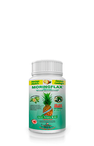 A la excelente fórmula elaborada a base de Linaza Canadiense (Canadian Flax Seed), Nopal, Maca, salvado de trigo, salvado de avena, Psyllium Husk, Hoja de Senna y frutas, MoringFlax le suma la potencia de la Garcinia Cambogia como quemador de grasas y los extraordinarios beneficios de la Moringa, que posee altos contenidos de antioxidantes, vitaminas y minerales. Por todo ello esta fórmula no solo nos ayuda a regular nuestro metabolismo digestivo y quemar grasas sino también logra mejorar nuestro sistema inmune y aumentar nuestros niveles de energía corporal.